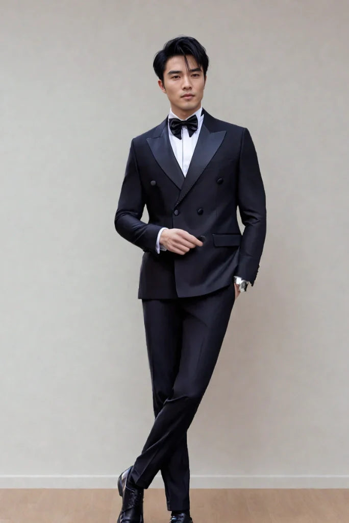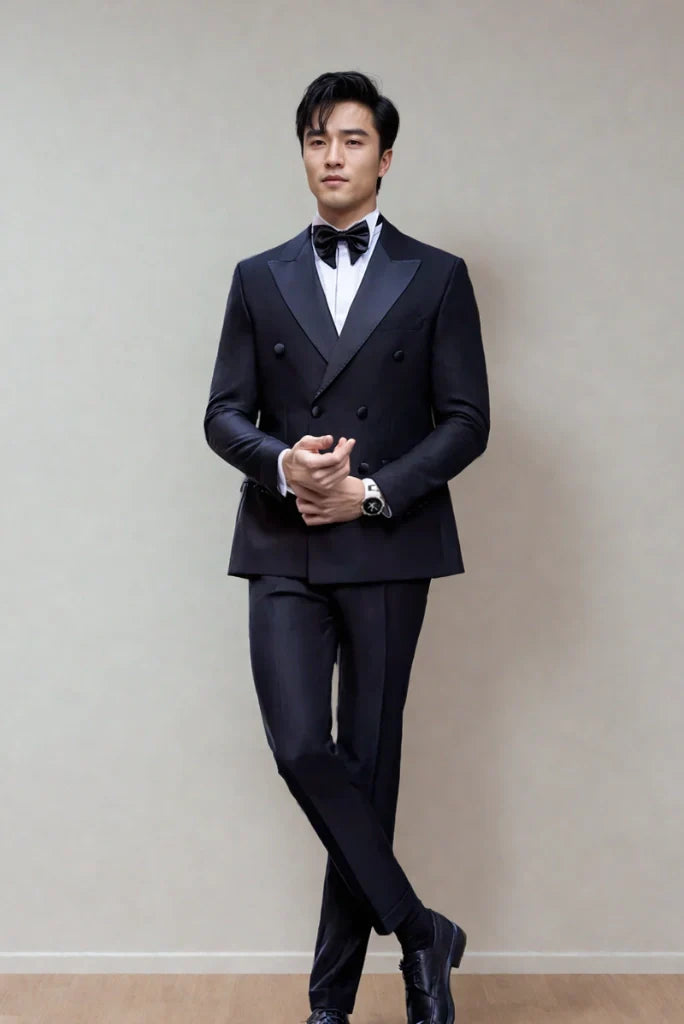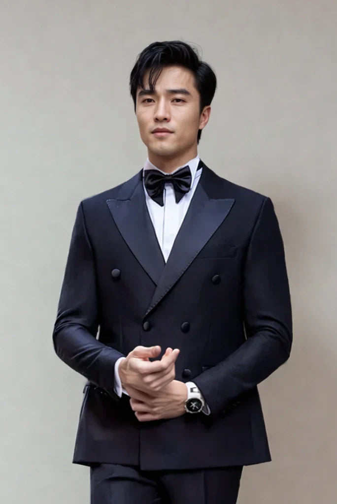 Mens Navy Blue Double Breasted Tuxedo Two Piece Suits Designer Elegant Partywear Suits Anniversary Prom Suits