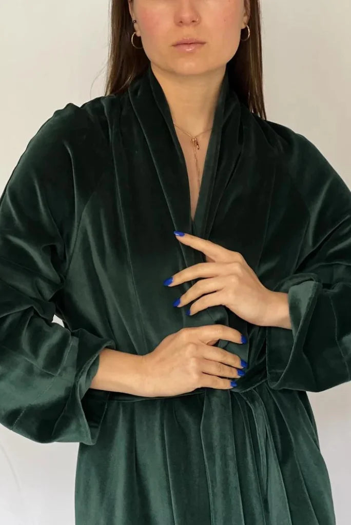 Women Green Velvet Robe for Bath and Party, Velvet Kimono Robe for Her