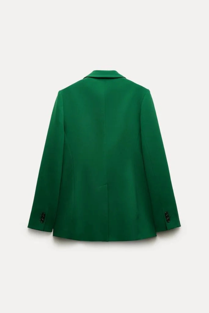 Jade Green Straight Fit Blazer, Long Sleeves with Shoulders Pads and a Button opening,